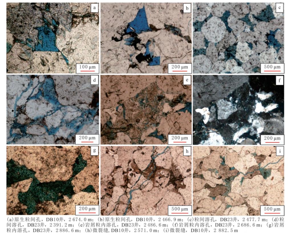 图4 研究区下石盒子组致密砂岩孔隙镜下特征